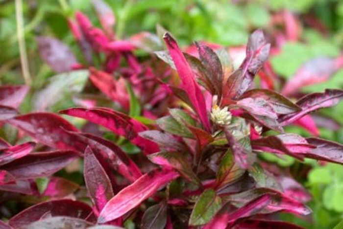 Освещение. Освещение должно быть достаточно яркое. От его интенсивности зависит окраска листьев - чем ярче освещение, тем более в ней преобладают красные тона. Для альтернантеры подходит как естественное, так и искусственное освещение. Для искусственного освещения предпочтительна комбинация ламп накаливания и люминесцентных ламп. Люминесцентные лампы типа ЛД применять не следует, так как спектр излучаемого ими света не совсем устраивает растение.