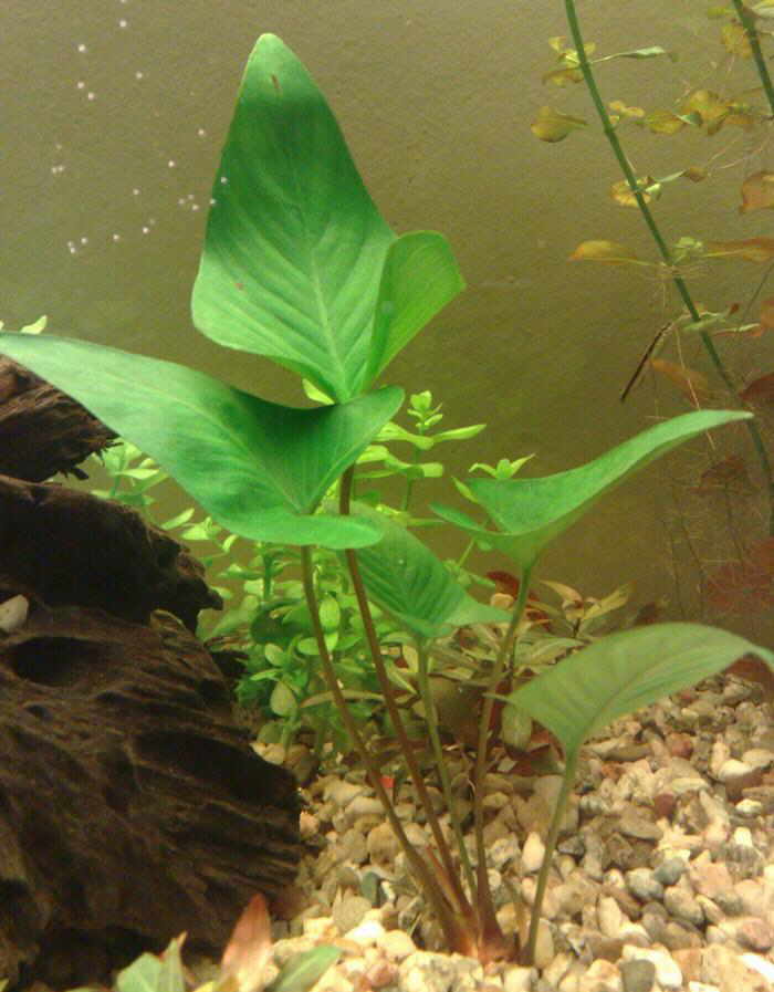 Лучше посадить в тенистом месте, чтобы ограничить рост водорослей на листьях. Это крепкое растение, слабо адаптируется к подводному обитанию в аквариуме, очень медленно растет под водой. Но достойно рекомендации для содержания в крупных палюдариумах. Имеет очень жесткие листья, большинство растительноядных рыб не трогают их, поэтому может быть хорошим выбором в аквариуме с африканскими цихлидами или золотой рыбкой. Температура 22 - 28 °С; рН 6,0 - 7,5; dH 2 - 15°.