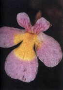 Цветки простые, пазушные, цветоножка до 3 см. Чашелистики 1 мм шириной. Венчик двугубый. Верхняя губа двураздельная, 4 - 2 мм, доли одинакового размера и округлости, нижняя губа трехраздельная, шириной 9 мм, средняя доля несколько крупнее. Венчик розовато-фиолетовый, нижняя губа с желтым пятном, верхняя с красными полосами. 4 тычинки Пестик 2 мм. Рыльце двухчастное. Завязь удлиненная. Коробочка длиной 3 мм.