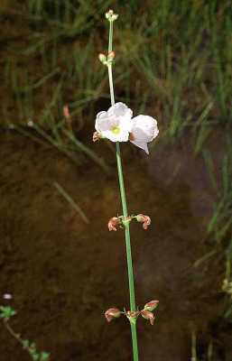 Описание: Типичное высокорастущее болотное растение, не переносит постоянного затопления водой. Развивает большое число разнообразных по форме листьев и достигает 1 м высоты. Листья от узколанцетных до широколанцетных, яйцевидные, у основания овальные или зауженные, постепенно переходящие в черешок, к вершине тоже зауживаются и заостряются, плотные, длиной до 40 и шириной до 12 см, жилок до 7. Через плотную и мясистую листовую пластинку сеть из пересекающихся линий увидеть трудно, она становится видимой после кипячения листа в спирте. Цветонос прямостоячий, 60 - 150 см длины, неразветвленный. Цветки собраны в простые соцветия, трехлепестковые, лепестки белые, крупные, 5 см в поперечнике, чашелистики плотные и во время созревания увеличиваются, постепенно охватывая плод. Семена с ребрами, но без боковых желез.
