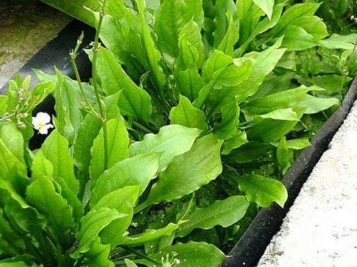 Содержание: В аквариуме формирует длинные черешки с очень узкими и короткими листовыми пластинками, что не очень декоративно. Вдобавок при благоприятных условиях быстро формируются надводные листья. Для временного подводного содержания годятся, прежде всего, молодые экземпляры. Используя обедненный питательными веществами грунт и не слишком сильное освещение (тут необходимо немного поэкспериментировать), можно несколько замедлить темпы роста. Поднимающиеся над водой листья необходимо отстригать, в результате чего у последующих листьев в большинстве случаев формируется более короткий черешок. В остальном же вид не предъявляет каких-либо особых требований.