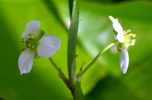 Описание: Растение достигает 25 см высоты. В толще воды развивает обычно две категории листьев: подводные и надводные. Корневая система мочковатая, стебель короткий, прямой. Подводные листья на очень коротких черешках, лентовидные, линейные, длиной до 24 и шириной до 2 см. Надводные сидят на черешках до 7 см, яйцевидные, у основания широкоовальные, а к вершине узкоовальные с острыми концами, длиной до 9 и шириной до 3 см; продольных жилок до 5; у высушенных листьев видны пересекающиеся линии. Цветонос прямостоячий тонкий, до 30 см высоты, неразветвленный, цветочных мутовок 3 - 7. Цветки в поперечнике 0,7 см, венчик белый, трехлепестковый, колокольчатый; тычинок 6, из них 3 коротких. Семена имеют 3 ребра и 2 - 5 желез.