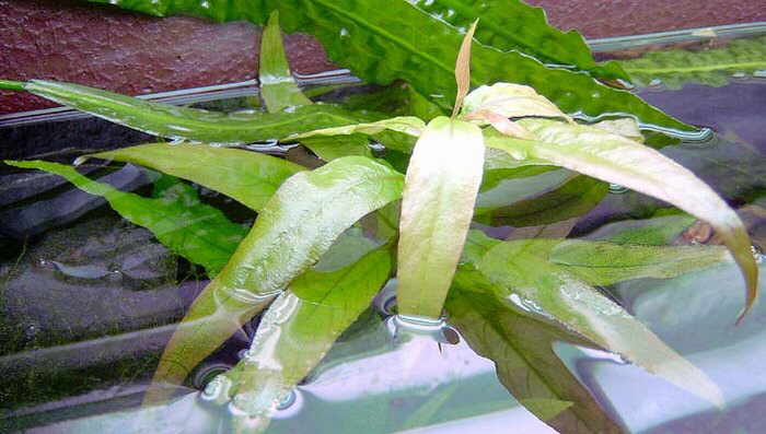 Развитие корневой системы слабое, корни тонкие и белые, не входящие глубоко в грунт. Из-за своих больших и длинных листьев это растение больше подойдет для высадки в группах в аквариумах внушительных размеров. Чаще используется для создания заднего растительного фона или для высадки небольшими группами посреди аквариума.