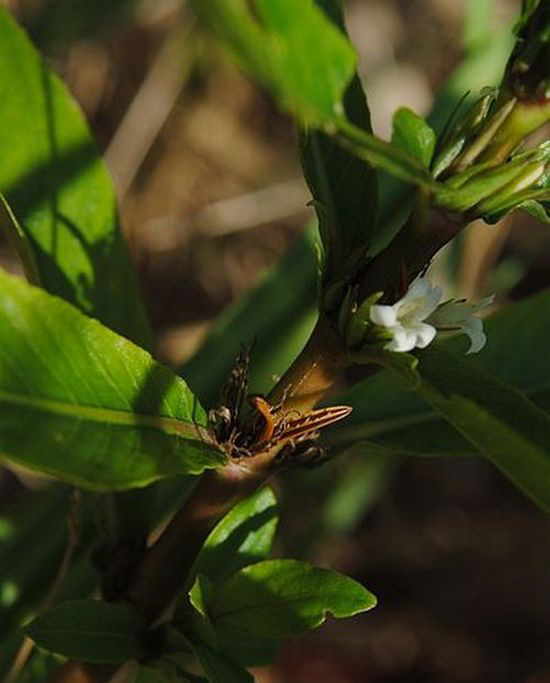 Описание: Имеет длинные большие листья. Стебель в поперечном разрезе либо круглый, либо граненный, маловетвистый, толщиной от 1,5 до 5 мм. Держится листовая пластинка на коротком черешке 1 - 2 см, расположены листья крестообразно-супротивно, окрашены в сочно-зеленый цвет.