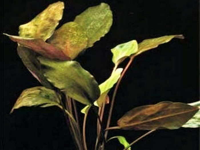 Один из самых великолепных представителей рода криптокорина. Овальные листья на длинных черенках имеют очень красивую окраску: сверху они оливкового цвета, с более светлыми крупными пятнами, блестящие, а снизу фиолетово-красные. Куст при благоприятных условиях достигает высоты 50 см. Для выращивания криптокорины подходит высокий аквариум большой емкости. Размещают ее на заднем плане подводного сада. Она очень хорошо сочетается со светло-зелеными мелколистными длинностебельными растениями, такими как лимнофилы, кабомбы, гигрофилы. Криптокорина пользуется заслуженной популярностью у аквариумистов. Растет она даже при благоприятных условиях сравнительно медленно, но равномерно в течение года.