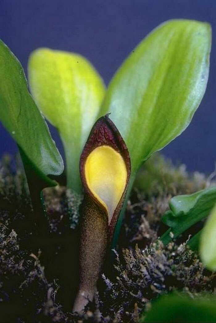 Цветочные органы достигают 16 см длины, цветок до 10 см, лепесток до 2 см длины, яйцевидновытянутой формы, внутренняя часть его темно-пурпурного цвета, с шероховатым краем, зев желтого цвета. Это растение лучше растет в оранжерее при теплых влажных, теневых условиях.