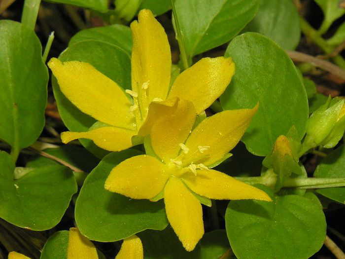 Описание: Побеги вербейника над водой ползучие и достигают в длину 60 см, прямостоячие подводные в высоту около 25 см. В нижних узлах надводных побегов образуются корни. Листья имеют короткие черешки и располагаются супротивно. Листья денежника в длину до 3 см и ширину около 2,7 см, по форме округлые. Подводные листья окрашены в светло-зеленый цвет, надводные имеют желто-зеленый и зеленый окрас. В период с мая по июль растение цветет одиночными надводными цветками желтого цвета.