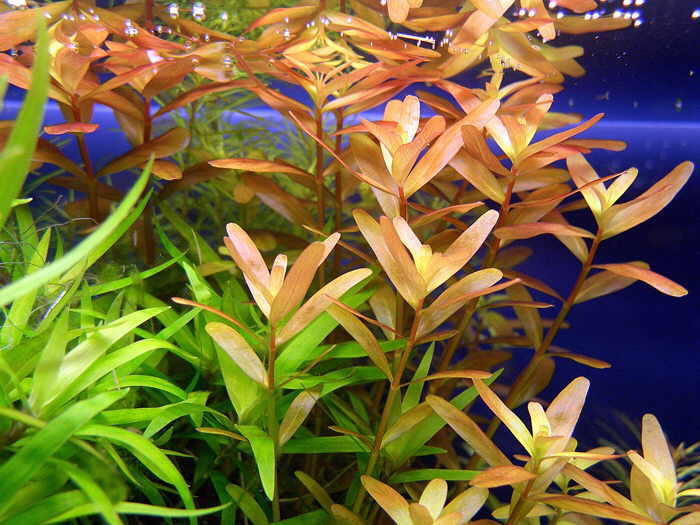 Освещение. Освещение должно быть умеренно яркое. При недостатке света ротала вытягивается и выглядит слабой и бледной. Избыток освещения может привести к появлению водорослей, которые губительны для растения. Подбирать освещение надо индивидуально, учитывая, что растение выдерживает умеренное затенение. Ориентироваться можно на окраску молодых листьев, которая при благоприятных условиях приобретает розоватый оттенок. Очень полезна подсветка лампами накаливания в сочетании с рассеянным естественным светом или освещением люминесцентными лампами. Продолжительность светового дня должна быть около 12 часов.