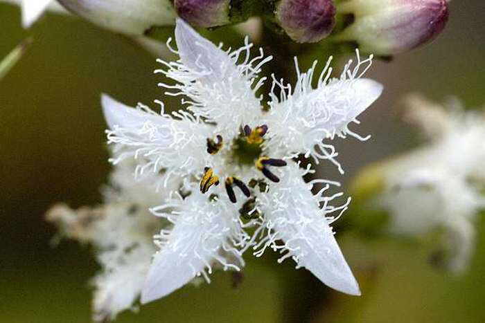 Многолетнее травянистое растение с длинным толстым корневищем, верхушка которого слегка приподнята и несет несколько (3 - 5) прикорневых голых тройчатых, темно-зеленых листьев длиной до 17 - 30 см на длинных (до 20 см) черешках. Отдельные листочки длиной 5 - 8 см и шириной 3 - 5 см. Листья очередные, со стеблеобъемлющим влагалищем. С нижней стороны от корневища отходят редкие придаточные корни. Цветоносный стебель безлистный (стрелка) длиной 15 - 35 см (вместе с кистью). Цветки пятичленные, правильные, бледно-розовые или белые. Чашечка, остающаяся при плодах, длиной 2 - 3 мм, с 5 сросшимися туповатыми долями. Венчик длиной 12 - 14 мм, воронковидный, с пятилопастным отгибом. Тычинок 5. Соцветие - густая верхушечная кисть, длиной 3 - 7 см. Плод - одногнездная, почти шаровидная многосемянная коробочка длиной 7 - 8 мм. Семена эллиптические, гладкие, желтоватые или буроватые, блестящие, длиной 3 мм. Обильное цветение в мае – июне. Может быть рекомендовано для внешнего украшения аквариума и для террариума.