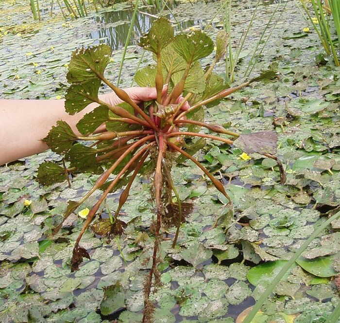 Описание: Стебель чилима находится под водой, развивается весной из плода и достигает поверхности воды. Имеет 3,6 – 5 м в длину. Корни зеленоватые, перисто-ветвистые, расположены на погружённом в воду стебле и имеют вид подводных листьев.