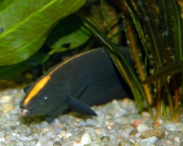 Рыба имеет длинное тело без чешуи, которое плавно сужается ближе к хвосту. Голова у рыбы большая. Вблизи хвоста имеется орган, который способен излучать электромагнитные импульсы, при помощи которых рыба может ориентироваться в мутной воде, а также защищать себя в случае возникновения опасности. Аптеронотус имеет длинный ьный плавник, который тянется вдоль всего тела от головы, до хвостового оперения. Грудные и хвостовые плавники являются основной движущей силой этой рыбы. С их помощью она как змея, волнообразными движениями, способна двигаться в разных направлениях. Справедливости ради стоит сказать, что в целом вся рыба выглядит причудливо. То, что касается окраски, то вся рыба черного цвета, на спине проходит светлая полоса. Еще две поперечные полосы расположены на хвостовом оперении.