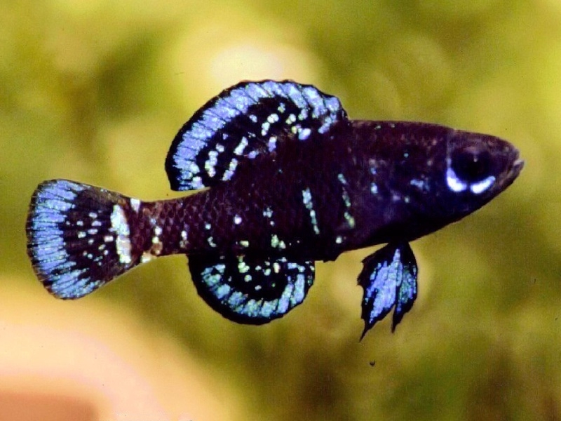 Рыбы имеют вытянутое и сжатое по бокам тело. Все плавники веерообразные. Цвет тела рыб коричневый с темными поперечными полосками. В преднерестовый период самцы приобретают контрастную темно-синюю окраску тела, на котором выделяются блестящие пятна голубого цвета. Самка, в отличие от самца, имеет более округлое брюшко, неприметную окраску и меньший размер. Самцы имеют размер 3,5 см, а самки обычно до 2 см.